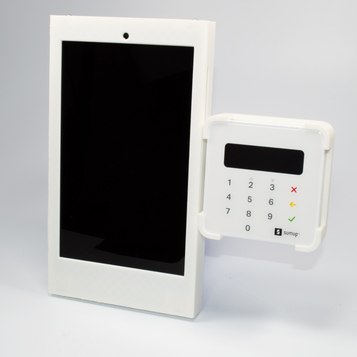 - Integrated Payment Mount: Features a dedicated side-arm designed to securely hold a standard card reader or PIN pad.
